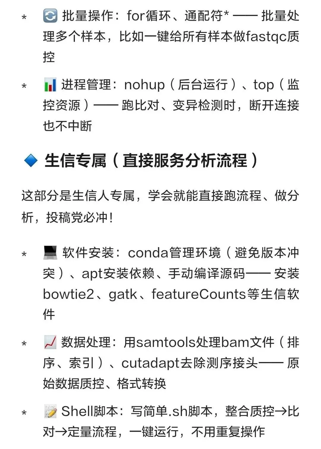 看,生信人用Linux跑测序数据,网安人用Linux挖漏洞、搞渗透、写POC,虽然目标不一样,但底层那套东西,文件管理、权限控制、脚本批量、进程调度,这些全是一样的!