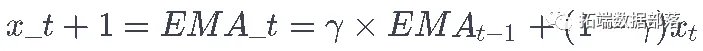 我们假设数值,比如xt=0.4,EMA=0.5,γ=0.5