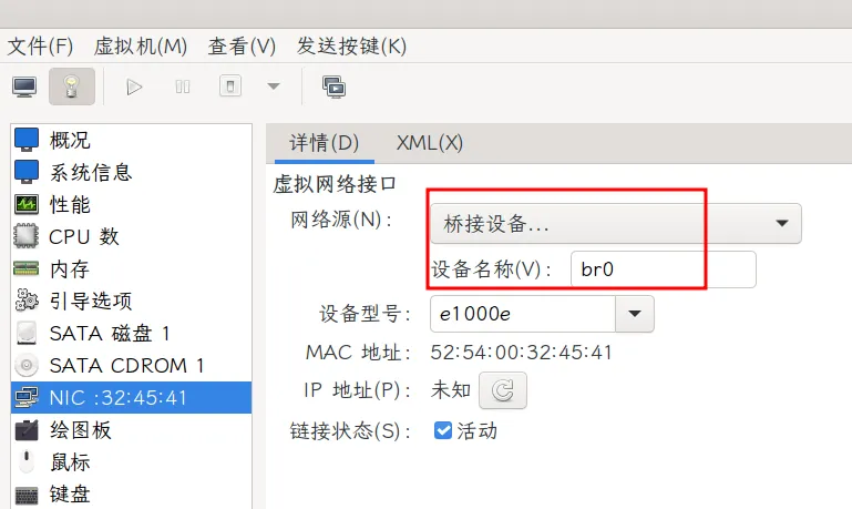 其次是网络,我使用的是笔记本有线网卡绑定网桥br0,安装系统测试过正常的。有次启动报错,才发现网桥默认不可用的,必须先让物理网卡处于链接状态,哪怕只是无线wifi链接上也行。