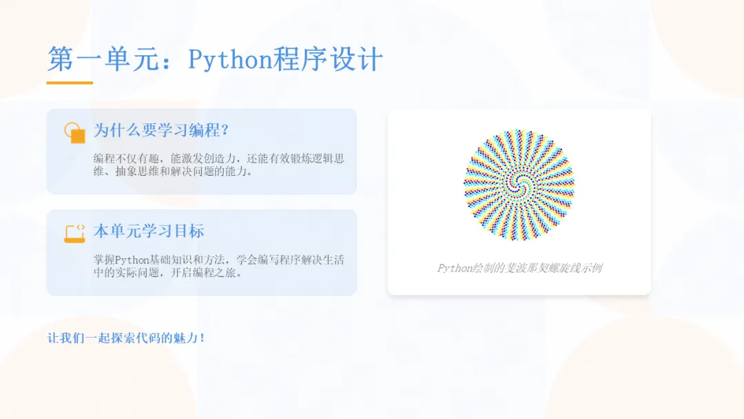 关注微信公众号+点赞+转发朋友圈,加上面的微信免费获取课件。第一单元 Python程序设计