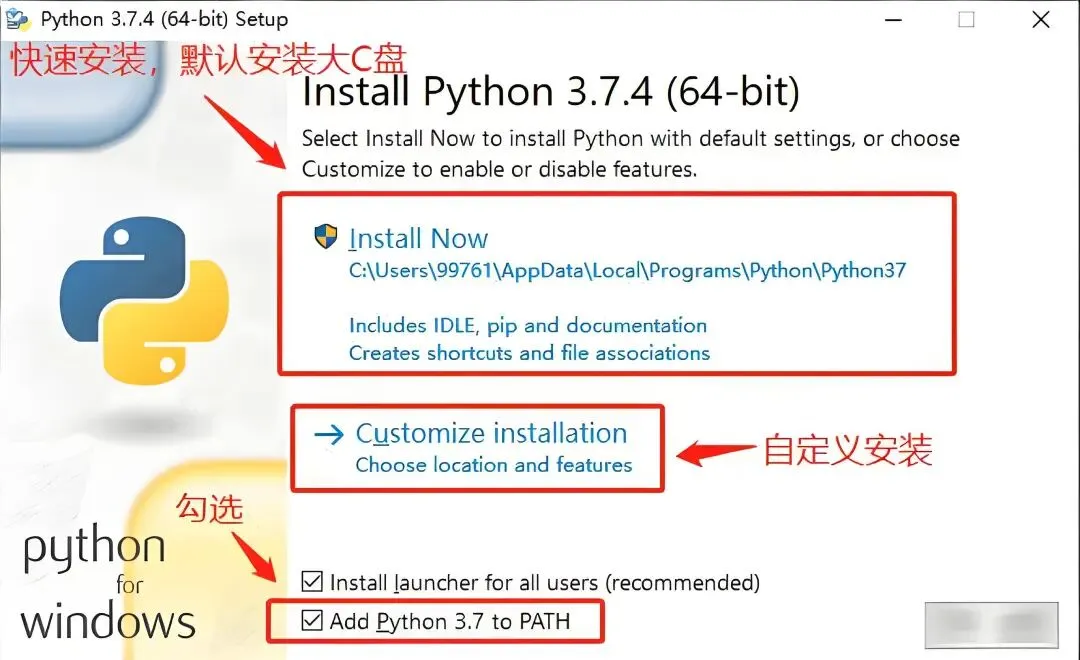 Add Python to PATH - • 解决:重新运行安装程序,这次记得勾上。或者手动配置环境变量(这个有点麻烦,建议重装)
