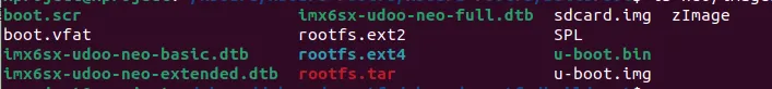 SPL、u-boot.img;zImage;imx6sx-udoo-neo-*.dtb;rootfs.ext4;sdcard.img:可直接写卡的整卡镜像。如下所示: