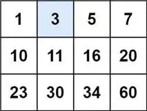 •示例 1:输入matrix = [[1,3,5,7],[10,11,16,20],[23,30,34,60]], target = 3,输出true