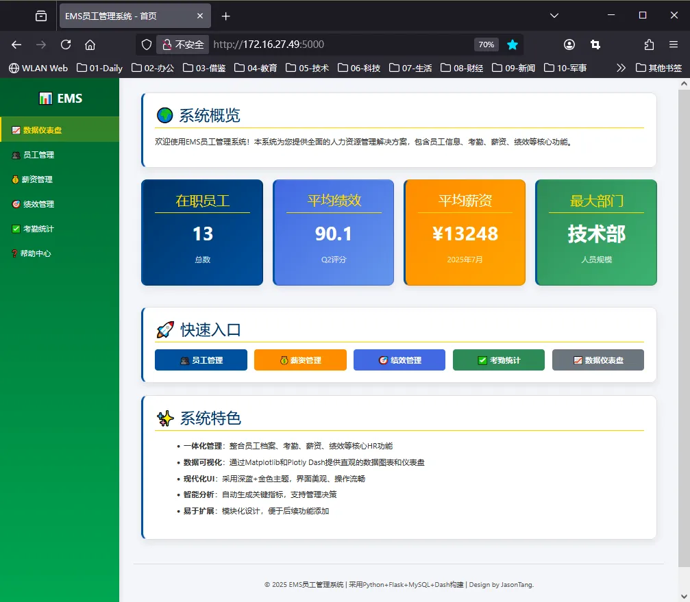 摘要:本文带领读者使用 Python + Flask构建一个功能完整、界面美观的 EMS 员工管理系统。系统以后端框架 Flask 为核心,连接本地 MySQL 数据库,实现员工信息的持久化存储,并通过 HTML + CSS 构建现代化前端界面,采用深绿色为主色调、金色与白色为点缀,打造出专业、清晰、视觉舒适的用户体验。