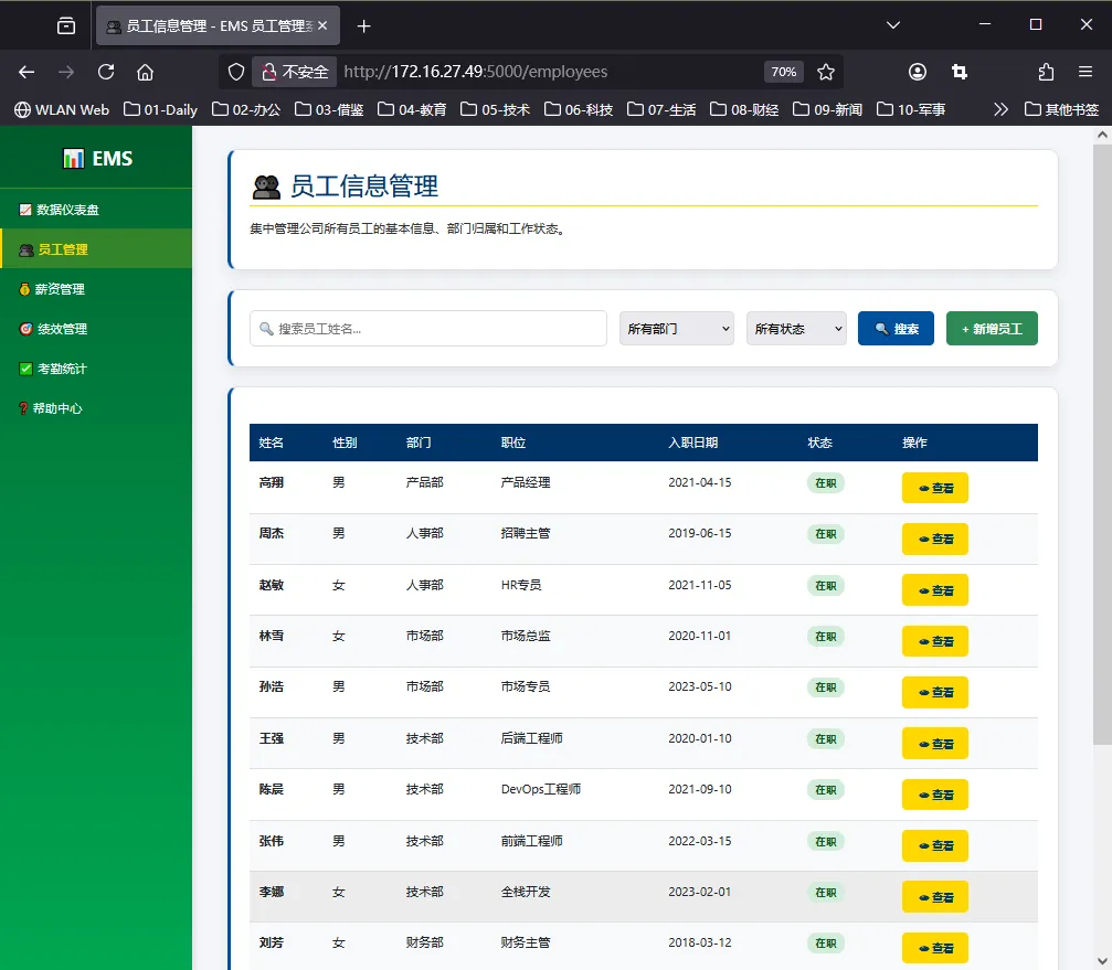 点击导航栏的 “员工管理”
