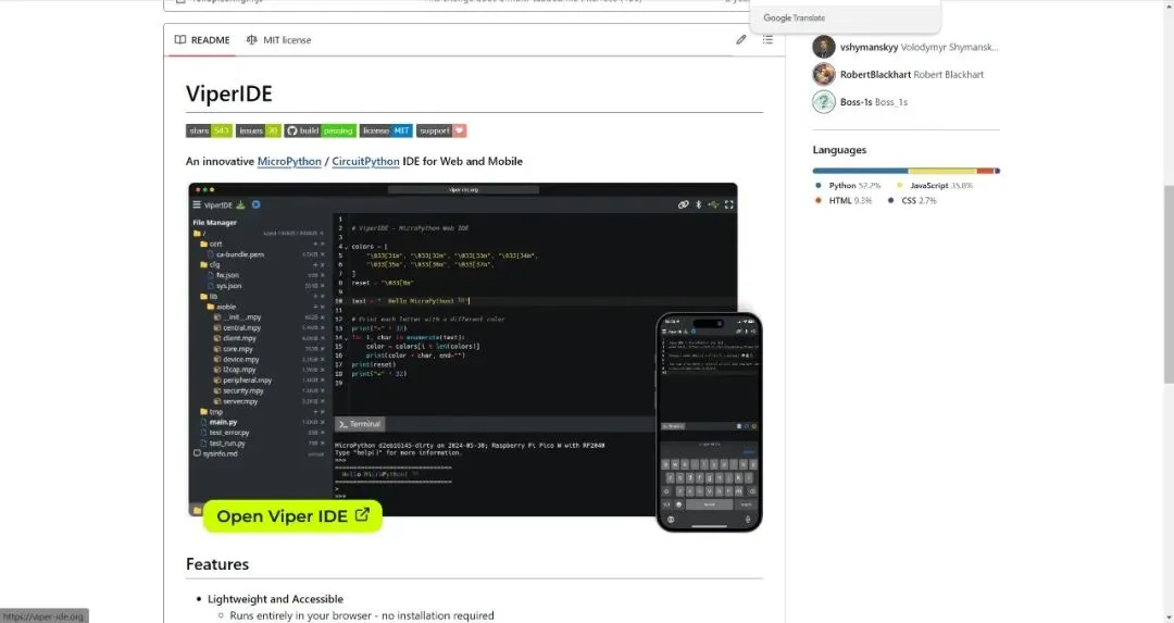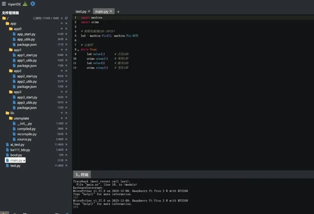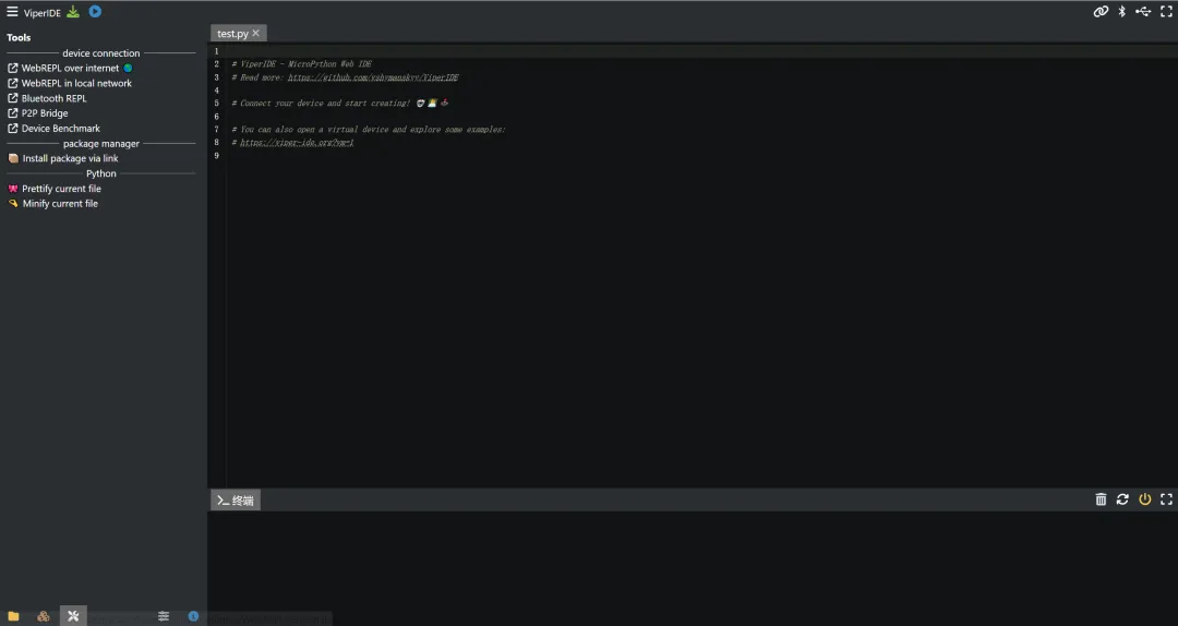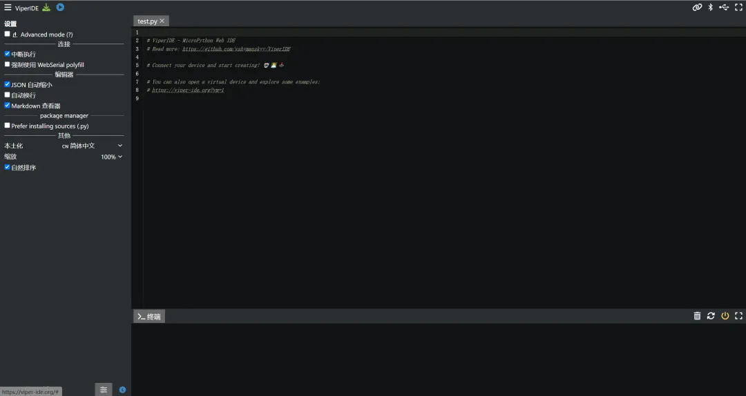 ViperIDE 是一款专为 MicroPython/CircuitPython 打造的浏览器端 IDE,核心就是一句话:不用装任何软件,打开浏览器就能写嵌入式代码。