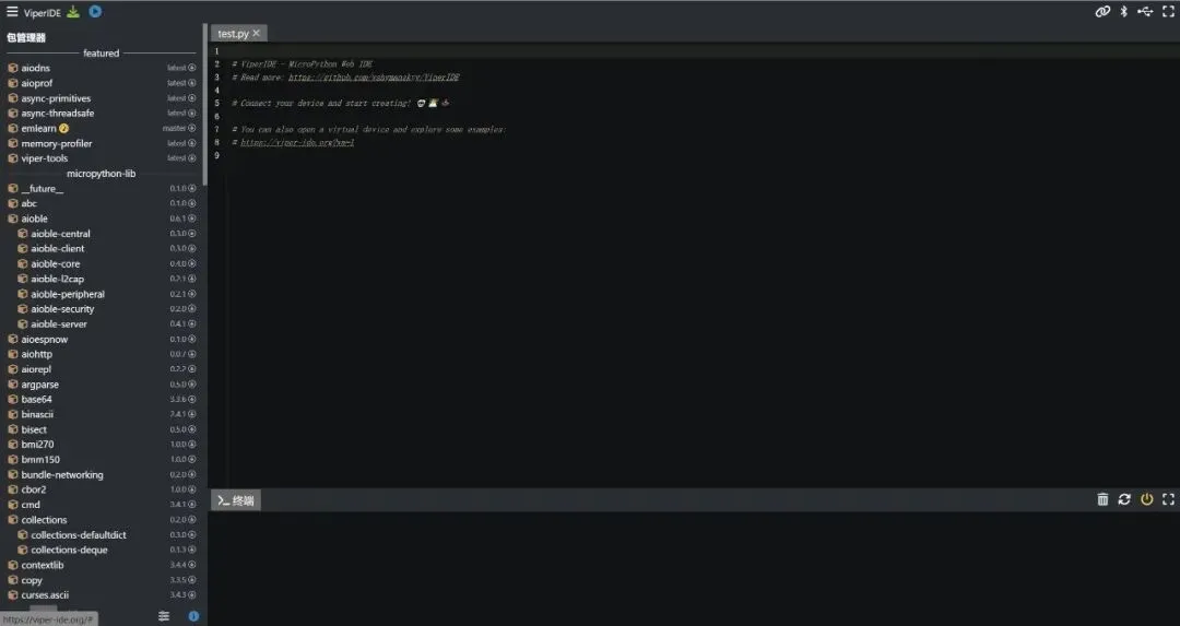 - 文件管理器 + 包管理器:直接在 IDE 里管理设备文件、安装第三方库,不用再切到其他工具