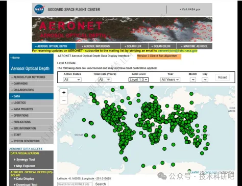 3.地基太阳光度计观测平台(AERONET):