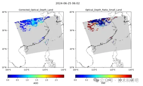 通过python画出DT-LAND画出陆地AOD和FMF彩图(陆地数据质量控制,选择QA==3的陆地数据)