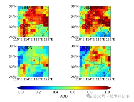 绘制区域气溶胶四季变化图(此图可以分析出该区域四季光学厚度季节变化)