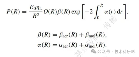 2.激光雷达原理介绍(后向回波信号原理,公式讲解。后向散射系数、消光系数、退偏比、彩色比等相关参数介绍,CALIOP并通过这些参数将气溶胶分类)