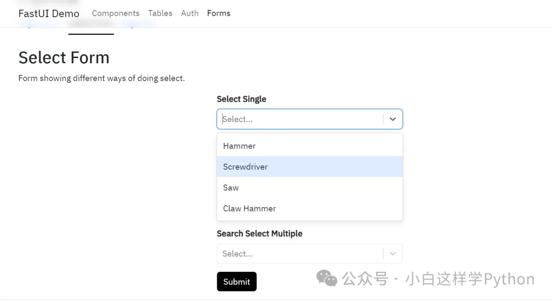 • 对于所有人来说,FastUI实现了后端与前端的真正分离,后端负责定义整个应用程序的逻辑,而前端则完全自由地实现用户界面。