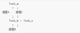 // 进程 Aspin_lock(&lock_a);spin_lock(&lock_b); // 等待 B 释放// 进程 Bspin_lock(&lock_b);spin_lock(&lock_c); // 等待 C 释放// 进程 Cspin_lock(&lock_c);spin_lock(&lock_a); // 等待 A 释放// 形成循环:A → B → C → A