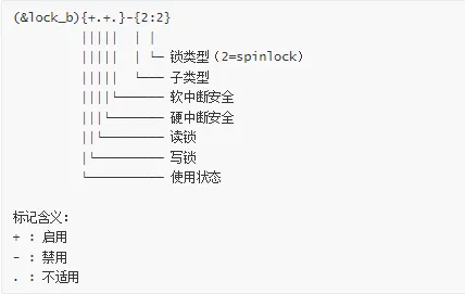 # 查看 lockdep 统计cat /proc/lockdep_statslock-classes: 1234 [max: 8192]direct dependencies: 5678 [max: 32768]indirect dependencies: 12345all direct dependencies: 23456dependency chains: 3456 [max: 65536]dependency chain hlocks: 12345 [max: 327680]in-hardirq chains: 123in-softirq chains: 456in-process chains: 2877stack-trace entries: 45678 [max: 524288]combined max dependencies: 12345678hardirq-safe locks: 12hardirq-unsafe locks: 234softirq-safe locks: 34softirq-unsafe locks: 456irq-safe locks: 56irq-unsafe locks: 678