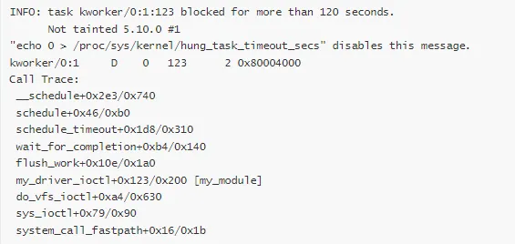 调用路径:ioctl → flush_work → wait_for_completion