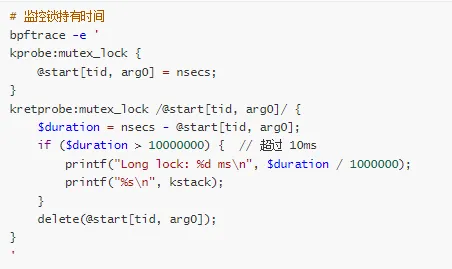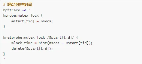 使用 bpftrace 跟踪锁持有时间: