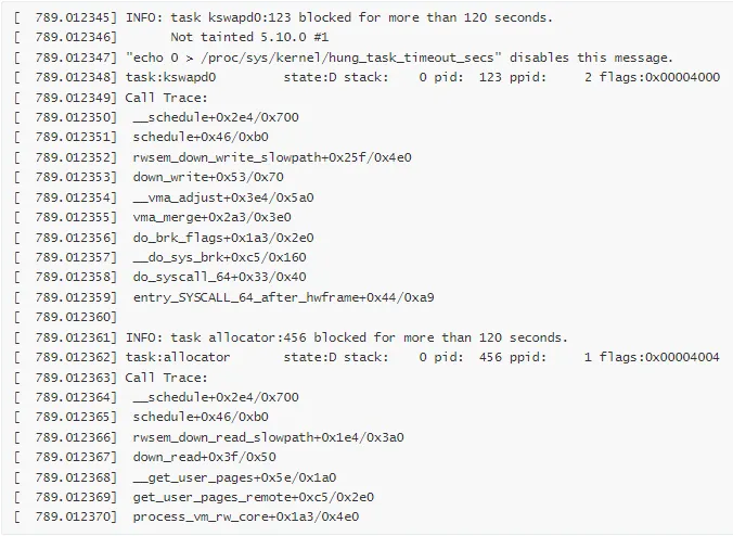# 配置CONFIG_DETECT_HUNG_TASK=y# 参数设置sysctl -w kernel.hung_task_timeout_secs=120# 120秒超时sysctl -w kernel.hung_task_warnings=10# 最多10个警告sysctl -w kernel.hung_task_panic=0# 不触发 panic