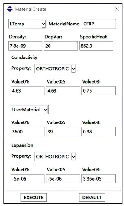 - 材料参数快速定义:密度、比热、热导率、纤维体积分数一键输入