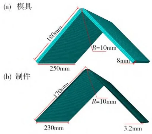 L 型复材制件和模具几何尺寸