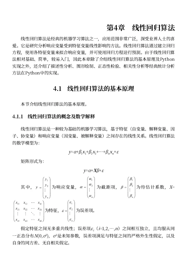 📚 为什么推荐计算机/软件/AI专业的同学刷这套?【1】原理与实现并重,拒绝"调包侠"市面上很多教程要么只讲数学推导(看完不会写代码),要么直接上sklearn(知其然不知其所以然)。这套教程的编排很扎实:每个算法都走通这个链条:数学原理 → 算法步骤 → Python原生实现(不依赖黑盒)→ sklearn对比验证 → 性能评估比如线性回归,不只是教你`LinearRegression().fit()`,而是带你手写梯度下降、理解正则化的几何意义、对比L1/L2的稀疏性差异。【2】17章内容覆盖经典算法全谱系,面试够用基础层(1-3章):Python快速回顾(假设你有基础)→ ML基础概念、术语体系、评价指标详解监督学习核心(4-10章):- 线性回归(含多项式、正则化)- Logistic回归(二分类/多分类,Softmax推导)- 判别分析(LDA/QDA,降维视角理解)- 朴素贝叶斯(概率图模型入门)- 高维惩罚回归(Lasso/Ridge/Elastic Net,坐标下降实现)- K近邻(KD树优化思路)非监督学习(11-12章):PCA(SVD视角)→ 聚类(K-means/层次/DBSCAN原理)集成与进阶(13-17章):- 决策树(ID3/C4.5/CART,剪枝策略)- 随机森林(Bagging+随机特征子集)- 提升法(AdaBoost/GBDT/XGBoost原理差异)- 支持向量机(拉格朗日对偶、核技巧推导)- 神经网络(反向传播手动实现,为深度学习打基础)这个覆盖度,应对大部分算法岗面试的"八股"部分足够了。