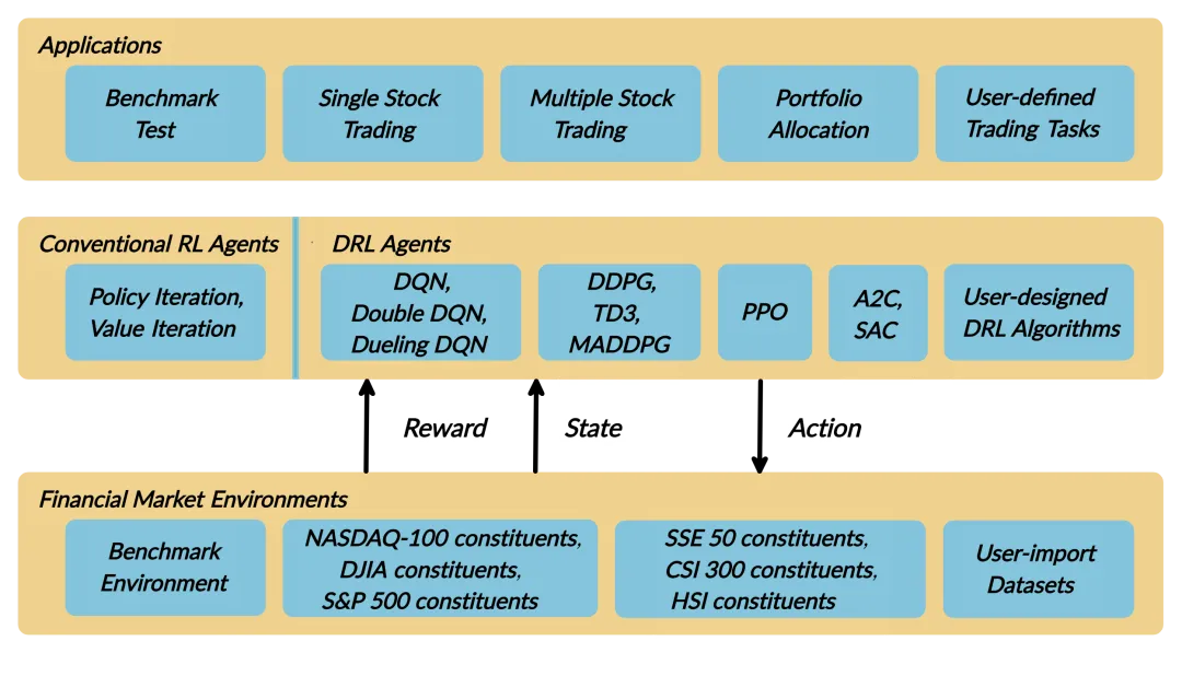 如果说前两个项目是"传统金融分析的数字化",FinRL 就是"用 AI 重新定义交易"。这是目前开源里最系统的金融强化学习框架,由 AI4Finance 基金会维护,发过 NeurIPS 论文。