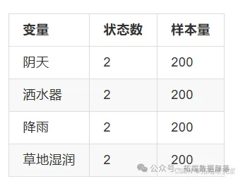 采用经典洒水器数据集验证方法有效性,数据特征如下: