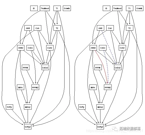 图3 网络结构优化对比(红色表示数据驱动的新增关联)