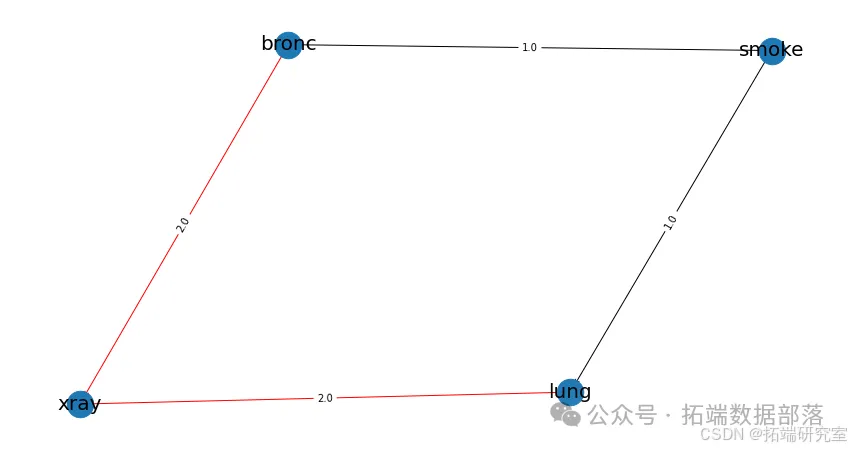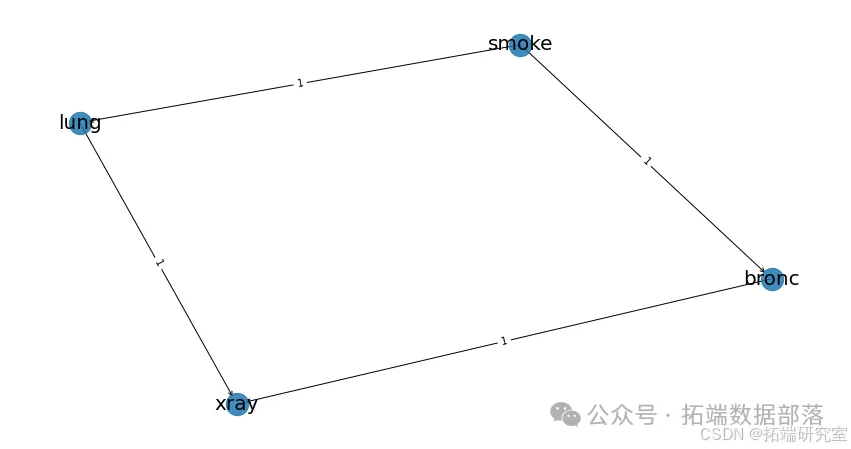 import bnlearn as bn# 定义临床知识驱动的网络拓扑clinical_edges = \[('smoke', 'lung'), # 吸烟与肺癌的因果关系 ('smoke', 'bronc'), # 吸烟与支气管炎关联 ('lung', 'xray'), # 肺癌影响影像表现 ('bronc', 'xray')\] # 支气管炎影响影像特征
