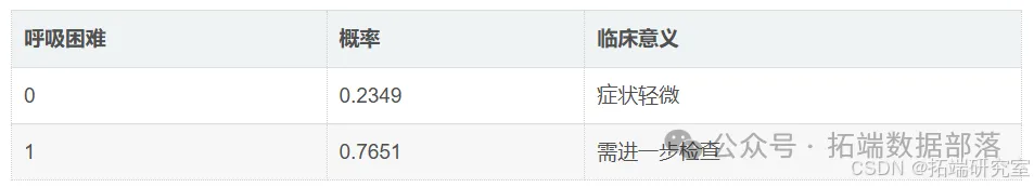 # 参数学习与条件概率估计diagnoss_mdel = bn.param# 呼吸困难概率推理clinil_case = bn.inference表1 吸烟且X光阴性患者的呼吸困难概率