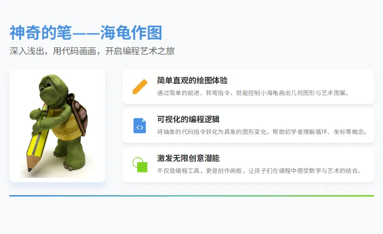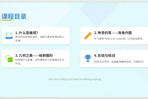 代码绘几何,笔尖生繁花。在 Python 的世界里,数学不再抽象,艺术有了逻辑,编程充满乐趣!让孩子用一支神奇的笔,画出未来的无限可能~