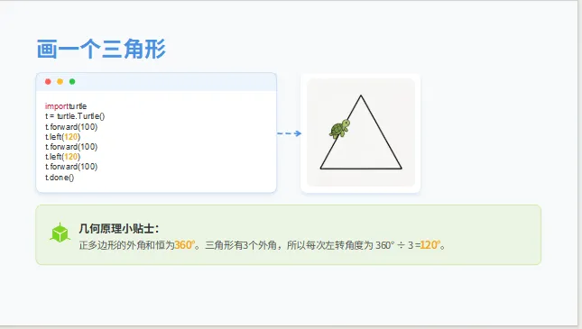 把抽象的角度、边长、外角和,变成看得见的图形。数学变直观,思维更清晰。
