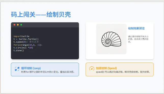 当 Python 遇上海龟绘图,当代码遇见几何图形,一场严谨逻辑 + 数学规律 + 艺术创作的编程课堂正式开启!告别单纯拖拽,走进真正的文本代码世界,孩子们用一支 “神奇的笔”,画出三角形、正方形、彩色花纹、梦幻贝壳,在动手敲代码的过程中,理解数学原理、掌握 Python 语法、感受图形诞生的快乐,这就是超受欢迎的 Python 特色课 ——《神奇的笔 & 几何之美》。