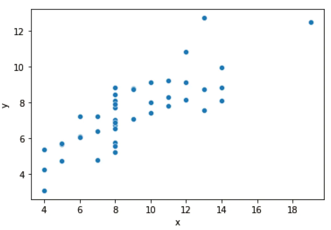 我们还可以对图表的颜色、尺寸、坐标轴标签及图表标题等多种属性进行调整。例如,Seaborn库中自带的参数hue,可对变量进行分组,并以不同颜色显示数据点。更多操作细节,可查阅Seaborn官方文档。plot=sns.scatterplot(x="x", y="y", data=df[df['dataset']=='I'])