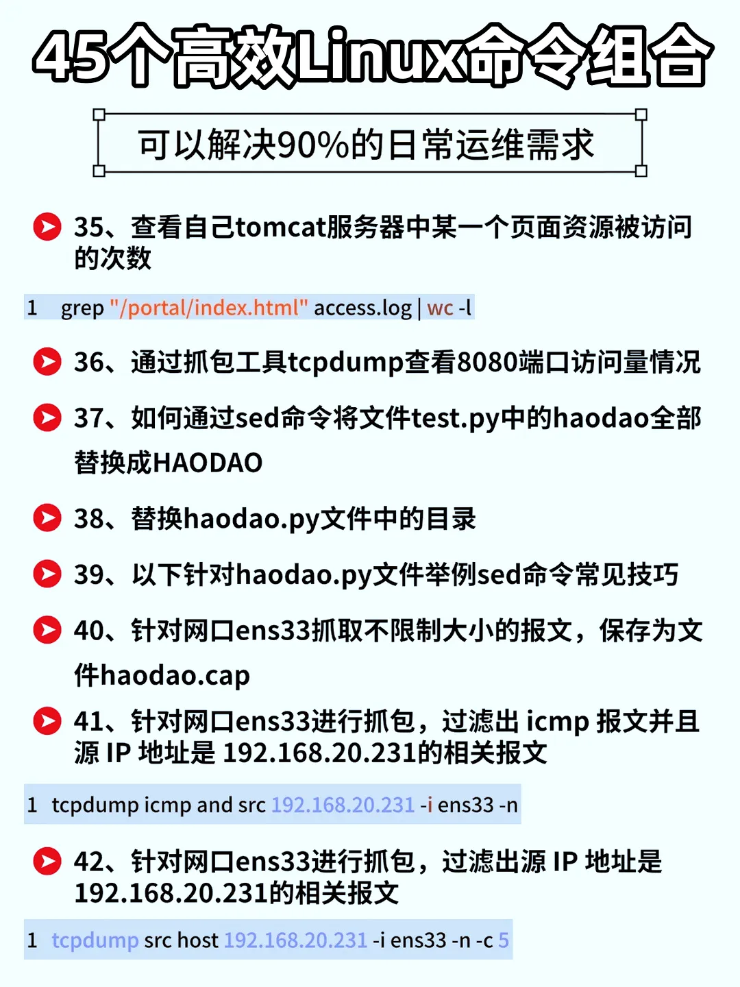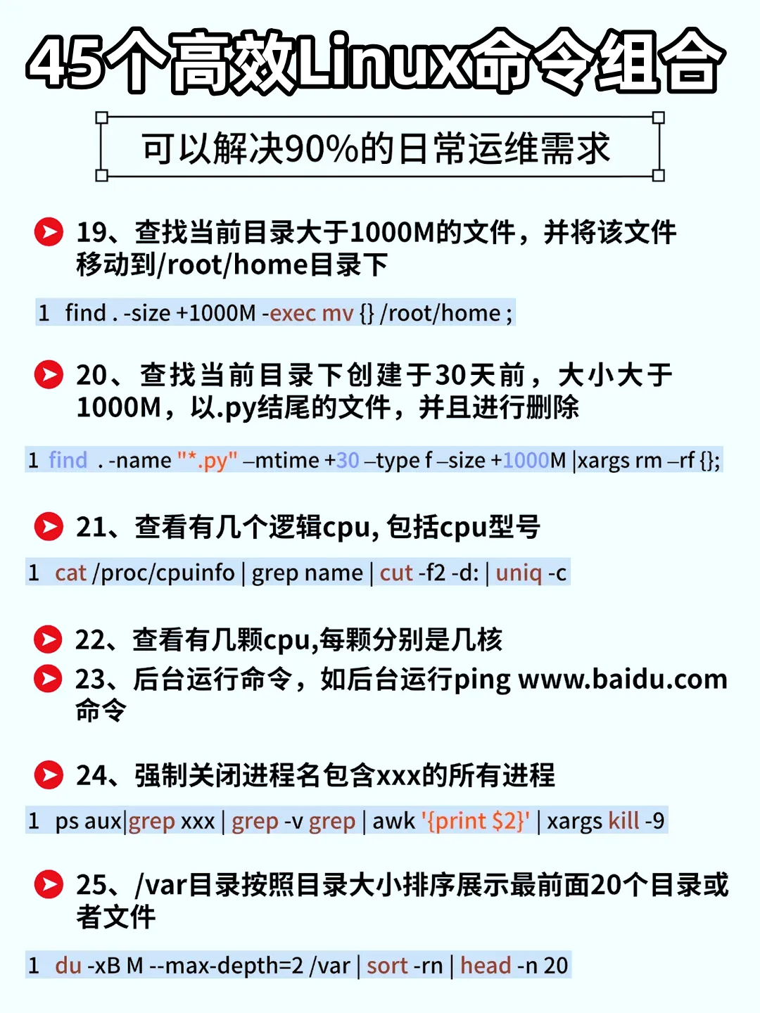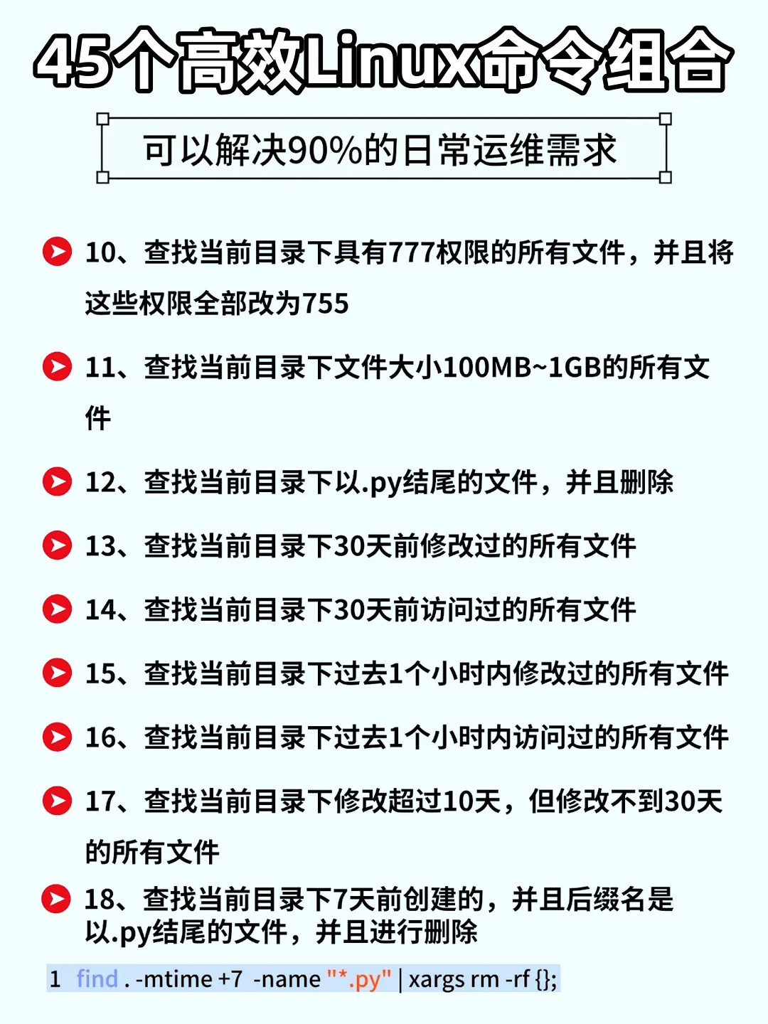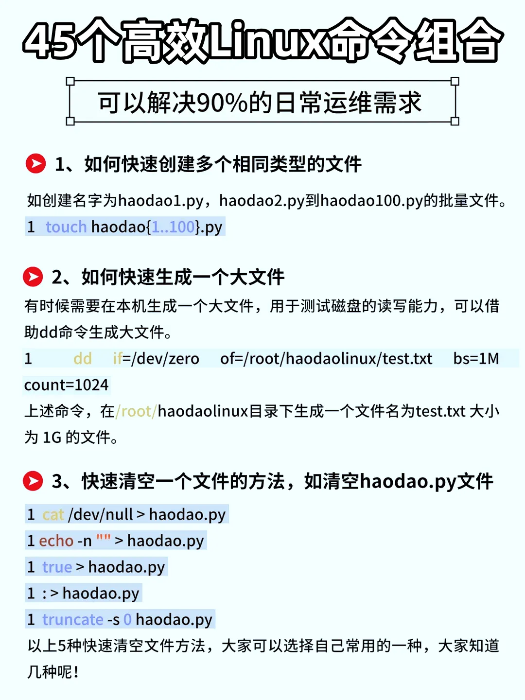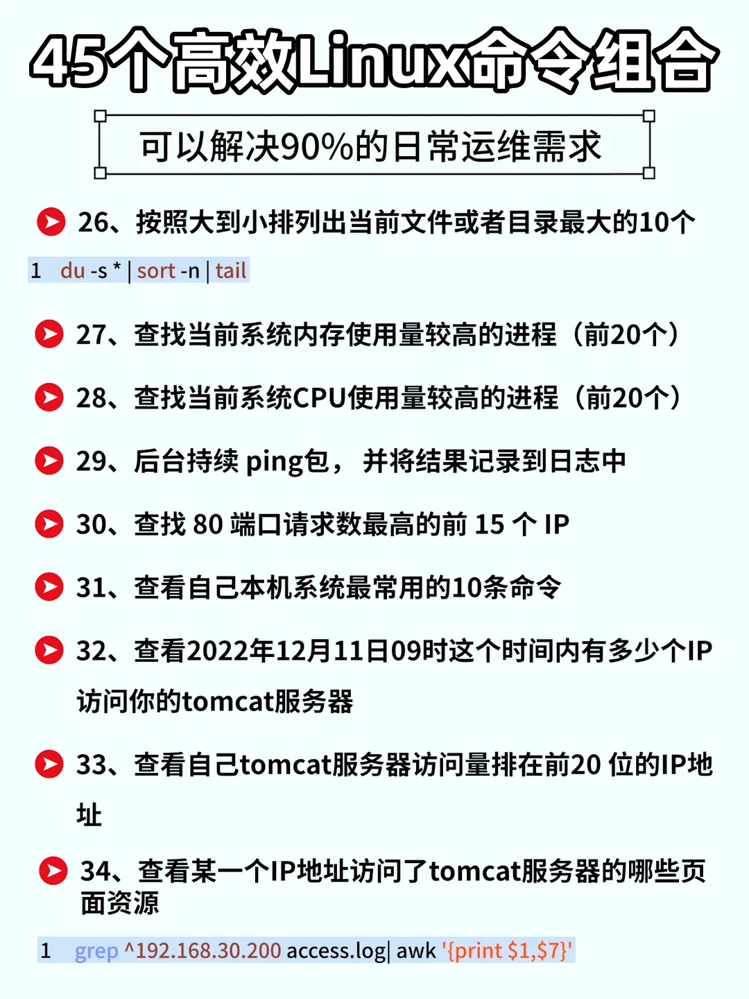 这次给大家带来的是45个高效Linux命令组合,你会发现用好这些命令实际可以解决90%日常运维工作需求~