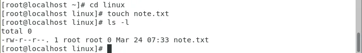 先执行cd linux,进入我们刚才创建的学习目录,在里面操作,文件管理更规范。1. 基础用法:创建单个空文件
