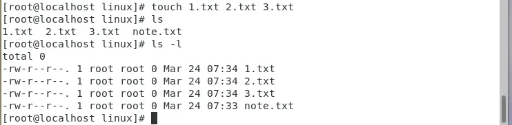作用:在当前目录下,创建一个叫note.txt的空文本文件。验证:输入ls -l,就能看到这个文件,第一列开头是-,代表这是文件(如果是d,代表是目录)。2. 高效用法:一次性创建多个文件