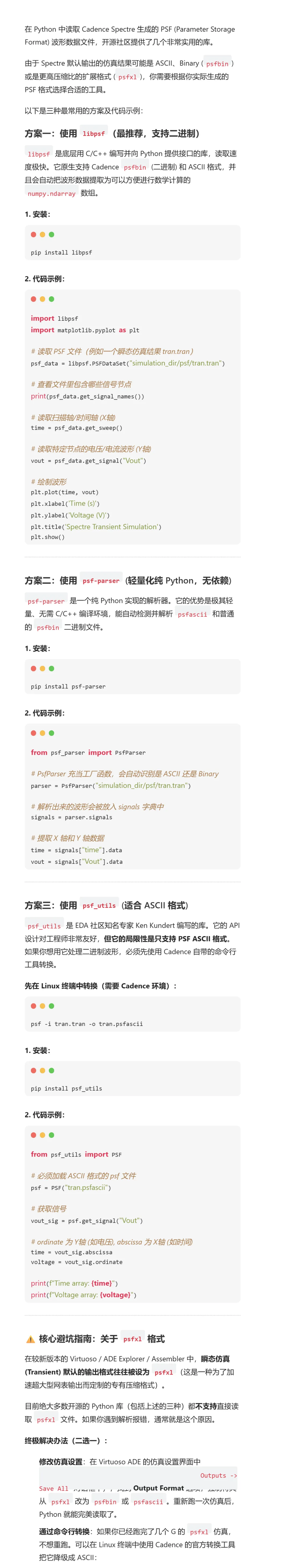 >如何用python读取存放Cadence spectre仿真波形数据的PSF文件