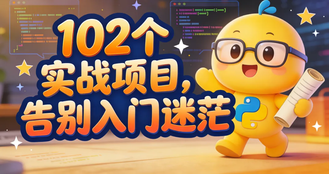 刚学完 Python 基础,对着编辑器无从下手?别让热情败给迷茫!102 个新手友好型实战项目,覆盖办公 / 爬虫 / 数据 / 趣味工具,附源码边敲边学,一周练出实战手感,从 “看懂代码” 到 “会写代码”,这篇就够了!
