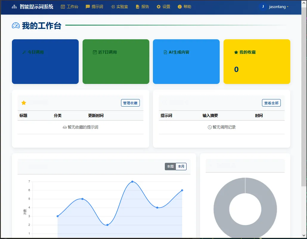 l量化分析与可视化看板:自动记录提示词的调用频次、响应时间、Token 消耗等关键指标,生成多维度的数据报表,辅助用户进行资源效率评估与决策优化,实现提示词资产的可持续演进。