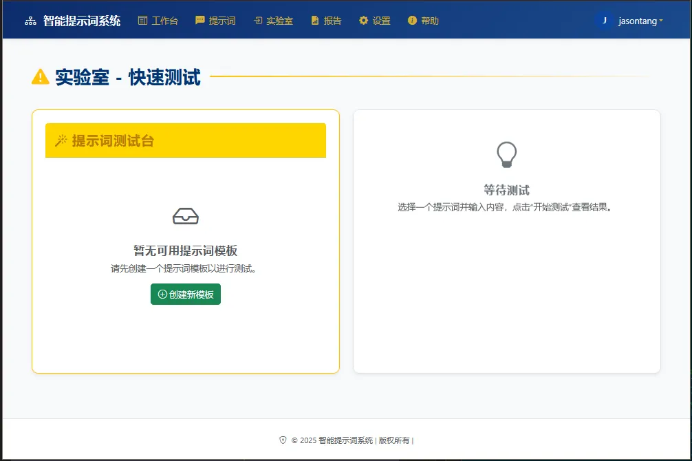 l多版本对比测试(A/B Testing):提供“提示词实验室”功能,支持对同一任务的不同提示词版本进行并行测试,通过控制变量法科学评估其生成质量与稳定性,为提示词优化提供实证依据;
