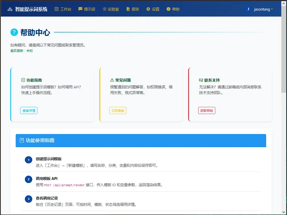 备注:智能提示词是传统静态提示词与一个支持持续学习和优化的管理系统的结合体。主要是通过系统性的方法,将提示词的使用从一种“艺术”或“技巧”提升为可量化、可复现、可进化的系统。