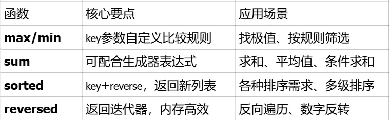 sorted是Python最强大的排序工具。它返回新列表,不改变原序列,而且支持各种自定义排序规则。