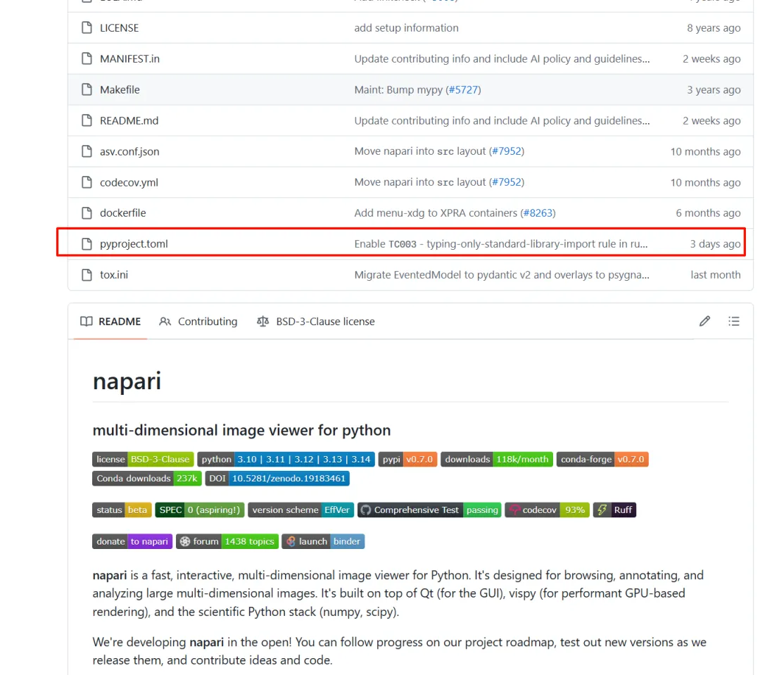 同时也发现很多项目开始用 uv 来开发 Python 项目,比如前面的 DeepLabCut、napari 都是用 uv 来管理项目依赖的。