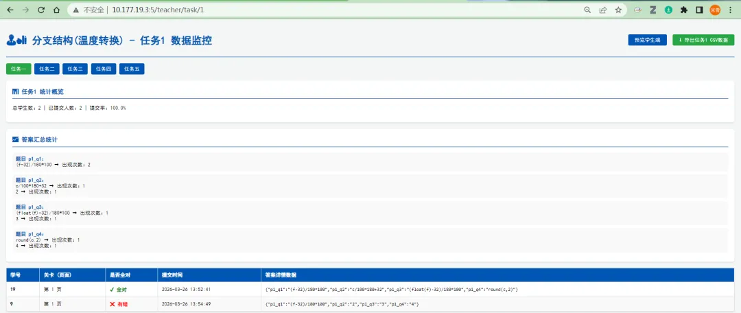 后期改进策略:①只注重于收集数据本身,学生的错误可以在收集之后统一集中反馈;②看看是否有可以直接在网页端运行python程序的组件,以免切换界面;③优化后台数据监控界面!