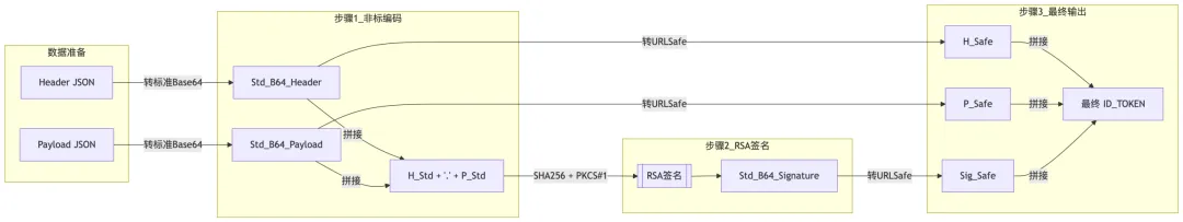 _generate_id_tokenexecutereturn_url、KID 生成及 Payload 结构嵌套问题。import json, time, base64, hashlibclass SsoTokenService:ENCODING = "utf-8"# 厂商公钥 (用于生成KID)PUBLIC_KEY_STR = """-----BEGIN PUBLIC KEY-----\n...\n-----END PUBLIC KEY-----"""# 厂商私钥 (用于签名)PRIVATE_KEY_STR = """-----BEGIN RSA PRIVATE KEY-----\n...\n-----END RSA PRIVATE KEY-----"""def execute(self, **kwargs):"""主执行逻辑"""# 1. 处理跳转地址 (关键点:参数名必须是 return_url)# 优先使用传入参数,否则使用硬编码的已验证长链接兜底DEFAULT_URL = "https%3A%2F%2Fwww.example.com%2Fportal..."target_url = kwargs.get("return_url") or DEFAULT_URL# (此处省略防止二次编码的逻辑...)# 2. 构造 Payload (关键点:类型匹配与结构嵌套)# Java端要求 exp/iat 为 String,且 cls 必须嵌套payload_dict = {"iss": kwargs.get("iss", "default_iss"),"sub": kwargs.get("sub", "user@email.com"),"aud": kwargs.get("aud", "tenant_id"),"exp": str(int(time.time()) + 900), # 转String"iat": str(int(time.time())), # 转String"cls": kwargs.get("cls", {"appid": "100"}) # 必须嵌套}# 3. 生成 KID (关键点:保留PEM头尾标签进行Hash)kid = hashlib.sha256(self.PUBLIC_KEY_STR.replace("\n", "").replace("\r", "").encode()).hexdigest()header_json = json.dumps({"alg": "RS256", "kid": kid}, separators=(',', ':'))payload_json = json.dumps(payload_dict, separators=(',', ':'))# 4. 生成 Token (调用非标逻辑)id_token = self._generate_id_token(header_json, payload_json)return f"https://sso.example.com/Auth?id_token={id_token}&return_url={target_url}"def _generate_id_token(self, header_str, payload_str):"""[核心算法] 复刻 Java 非标 JWT 生成流程"""# 1. 先转为【标准】Base64 (含 + / =)std_h = base64.b64encode(header_str.encode()).decode()std_p = base64.b64encode(payload_str.encode()).decode()# 2. 拼接 (注意:对标准Base64串进行拼接)sign_content = f"{std_h}.{std_p}"# 3. 签名 (得到标准Base64签名)std_sig = self._sign_rsa_manual(sign_content)# 4. 最后统一转为 URL-Safe (替换字符,去等号)to_safe = lambda s: s.replace('+', '-').replace('/', '_').replace('=', '')return f"{to_safe(std_h)}.{to_safe(std_p)}.{to_safe(std_sig)}"def _sign_rsa_manual(self, content):"""[零依赖] 纯 Python 实现 RSA SHA256 签名 (s = m^d mod n)"""# (此处省略 ASN.1 解析 n, d 的代码...)# n, d = self._parse_pem(self.PRIVATE_KEY_STR)# 1. SHA256 摘要msg_hash = hashlib.sha256(content.encode()).digest()# 2. PKCS#1 v1.5 填充 (含 OID)oid = b'\x30\x31\x30\x0d\x06\x09\x60\x86\x48\x01\x65\x03\x04\x02\x01\x05\x00\x04\x20'# padding 逻辑...# 3. 核心数学运算m_int = int.from_bytes(padding, 'big')s_int = pow(m_int, d, n)return base64.b64encode(s_int.to_bytes(key_len, 'big')).decode()