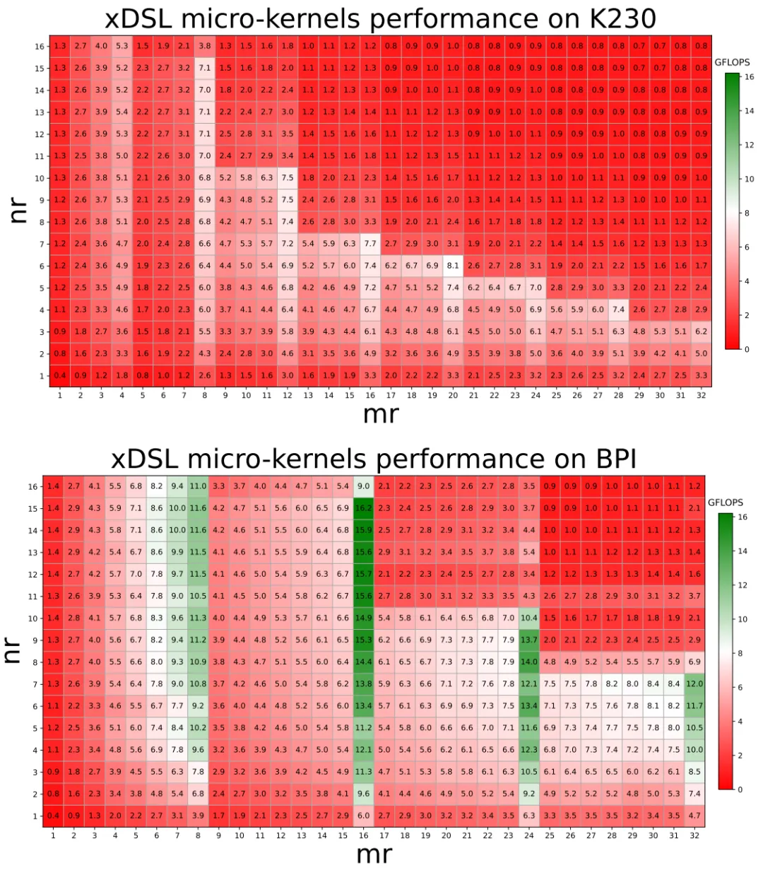 有趣的是,最佳配置并不一定是向量宽度的简单倍数如 ,这表明微内核尺寸需要综合考虑向量宽度、寄存器压力和缓存行为。