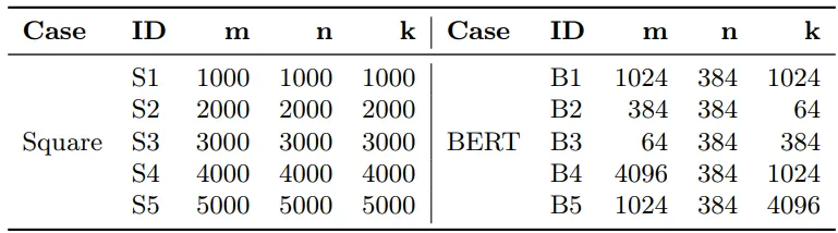 值得注意的是,BERT 工作负载中不同层选用了不同的微内核配置(、、),而在正方形矩阵中只用了 一种配置。这说明自适应微内核选择对于不规则形状的矩阵尤为重要。