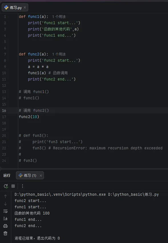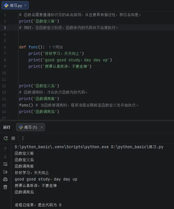 <1>定义带有参数的函数