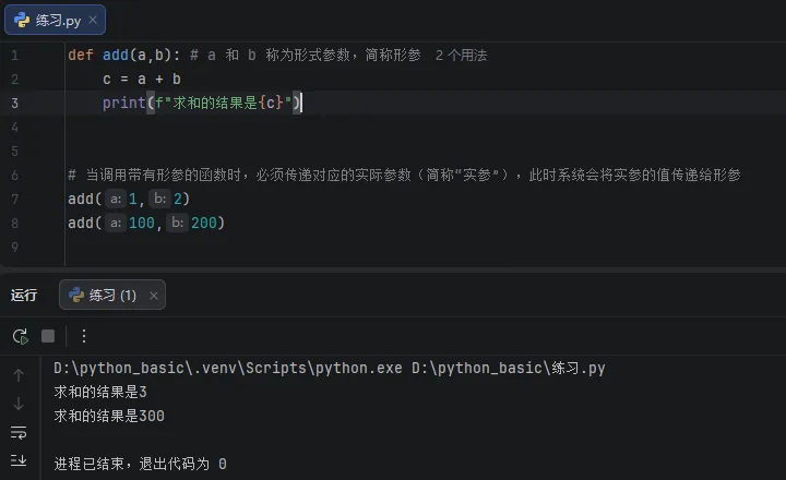 为了让函数更加通用,能够灵活计算任意两个数的和,我们可以在定义函数时设置参数来接收外部传入的数据。通过这种方式,函数便能处理不同的数值,从而解决通用性问题,这正是函数参数的核心作用。def add2num(a,b): c = a + bprint(c)
