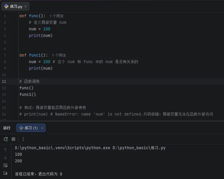 作用域(作用范围):局部变量是指在函数内部定义的变量,其作用域仅限于该函数内部,无法在函数外部或其他函数中访问。
